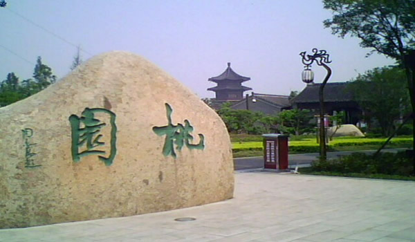 桃园景区与望海楼隔河相望,取孔尚任寄寓泰州陈庵创作《桃花扇》之意。