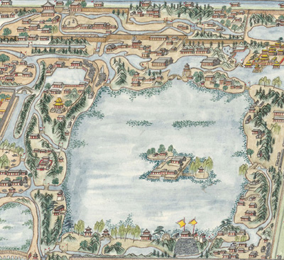 (这是福海周围的复原图,可以看到当初的建筑规模。据《圆明园原貌图》)