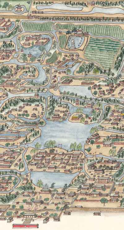 (这只是圆明园局部的复原图,但依然可以看出当初的盛景。据《圆明园原貌图》)