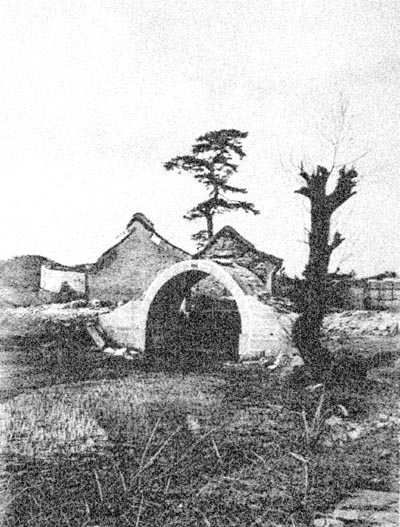 这张照片是规月桥在1900年被圆明园附近八旗官兵、土匪、流氓趁火打劫拆毁后的惨景。其拍摄角度与前一张很相似。它和前一张照片一起成为目前发现的唯一一组可以对圆明园建筑被毁前后进行对比的照片。我们将这两张照片对比来看,1900年后,规月桥桥拱还在,乾隆御笔“规约桥”三字依然镶嵌在桥拱处,但桥廊已经荡然无存。而规约桥北面的“澹存斋”也被破坏得只剩残墙断壁。这张照片还能证实,当年景区内大量松树被砍伐,规约桥前的那棵老树已经枯死而“澹存斋”后还幸存一棵未被砍伐的古树。(来源:学苑出版社博客)