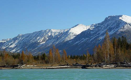 秋天的喀纳斯风景如画。每到金秋时节,白桦林一片金黄,映衬着银色的雪山,林边图瓦人的木屋更显安详。