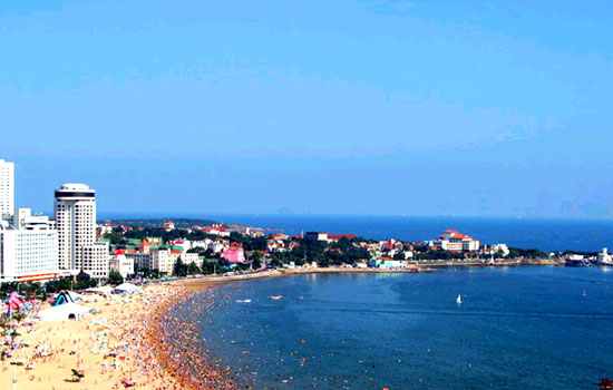 青岛市位于山东半岛东南部,依山临海,气候宜人,景色秀丽。蜿蜒曲折的海岸线和别具欧陆风情的街区和谐统一,碧海、蓝天、红瓦、绿树组成了一幅色调斑斓的图画,有“东方瑞士”和“亚洲的日内瓦”的美誉。第一海水浴场位于汇泉湾内,沙细坡缓,风平浪静,为优良的天然海滨浴场。浴场规模巨大,设施完善,满潮时沙滩面积达2.4万平方米。每日可接待数十万人次入浴,是我国最大的海滨浴场。浴场设有防鲨网和救生艇。