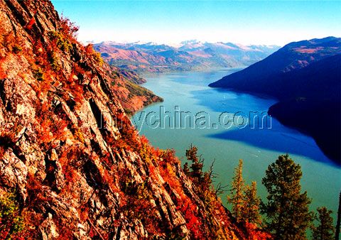 童话般的喀纳斯,这里有成片的桦树林覆盖在山的南麓。喀纳斯河与禾木河的河水都来自额尔齐斯河。喀纳斯河与禾木河形成一个半圆,分别绕着阿勒泰山流向俄罗斯与蒙古。这儿山青水秀,皑皑的白雪在阿勒泰山顶静静地覆盖着。由于人烟稀少,这儿的植被保存得十分完好。眼下正值秋季,也是这里一年一度的“色彩大展演”的时分,满山的桦树叶黄了、枫树叶红了,秋风中,整座山都在抖动,一片金黄。走进这童话般的世界中,走路都会十分小心,生怕踩折了嫩枝,踏伤了小草,破坏了大自然的宁静与无暇。