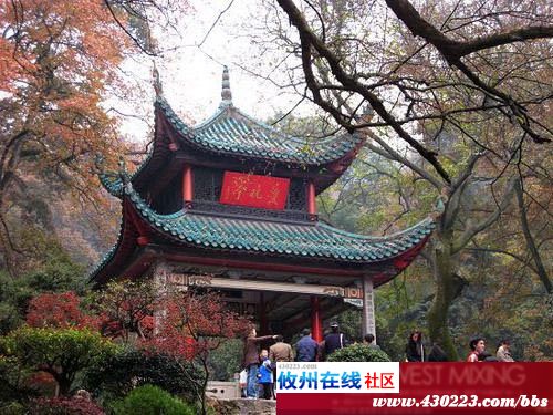 位于苏州城西30公里处,海拔221米,素以红枫、清泉、怪石这“三绝”而名闻遐迩。苏州自古就有“天平十月看红枫”的习俗。天平山麓枫林茫茫,其中有400多棵树龄几百年的古枫树,高约30余米,有两人合抱之粗,枝干挺拔,相传是明代万历年间由范仲淹第十七世孙范允临从福建移植来的,与江南枫树不同。这种枫叶呈三角形,经霜的叶子不是一下子转红,而是先由青变黄、变橙、再变紫,故又称“五色枫”。攀至半山的“望枫台”观枫,则是又一番奇景,那枫叶色彩变化往往是顶部先红,由上至下,循序变化,远望犹如一抹淡红云霞飘忽山上,气象万千,蔚为壮观。