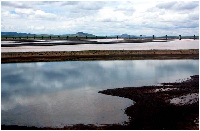 昆仑山口往南就算是出了海西州到玉树藏族自治州了,这里和柴达木盆地的戈壁盐湖相比完全不同,地面上有草了,是视野一望无际的高寒荒漠草原,人类很少踏足,因而又被称之为可可西里无人区。你可以感觉气候各方面有了明显的变化,空气不再那么干燥了,但是更加凛冽刺骨,风中的沙子不那么多了,但寒风却更加强劲,经常像要把人吹走的样子。刚出昆仑山口,距格尔木260公里处就到了楚玛尔河,楚玛尔河藏语意为“红水河”,这里是列车停靠的第四个站点,这里比邻可可西里车站。可可西里自然保护区就位于这段铁路的右方。“可可西里”蒙语意为“青色的山梁”(一说为“美丽的少女”,因发音不同而异)。