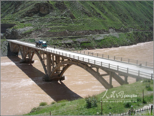 向下再往南走,就渐渐进入唐古拉山脉中,地势不像先前那么开阔了,连绵起伏的山峦,被披上高山草甸,柔和的像地毯铺在高原大地上。接着过了通天河大桥,周围的视野就开始收缩,进入峡谷地带。通天河在这里也被称为当曲,在此河谷宽广,水流散漫,完全不像西游记中所说,弱水三千,鹅毛不见底的险渡。