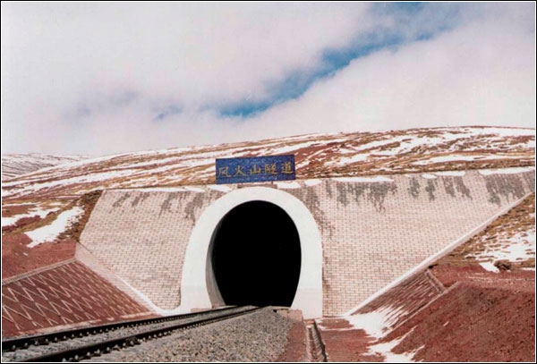 列车出了楚玛尔河站,距格尔木289公里处就是五道梁了,海拔4415米,此地曾被称为“到了五道梁,哭爹又叫娘!”,又是“纳赤台得了病,五道梁要了命”。因海拔和地势,空气不流畅,又因这一带土壤含汞量较高,植被较少,造成空气中含氧量很低,被认为是青藏线上最难的地段,很容易发生高原反应。通常认为如果能安全度过五道梁,唐古拉山口问题就不大了。下一站距格尔木350公里处就是重要的风火口隧道了,海拔4780米,这里是列车将要停靠的第五站。这里是现今世界上海拔最高的隧道,海拔5010米,全长1338米,全部位于永久性高原冻土层内。由于特殊的地理位置,这里气候极其不稳定,常年风雪肆虐,地上寸草不生,是一处景象壮观、奇伟的地方。风火山原名“风豁山”,因常年大风而得名。1955年号称“青藏公路之父”的慕生忠将军来此,见一片赤土,寒风呼啸,改称“风火山”。在隧道北口处设有我们的观景区,可见隧道和山浑然一体,山口时常寒风卷雪,云遮雾罩。