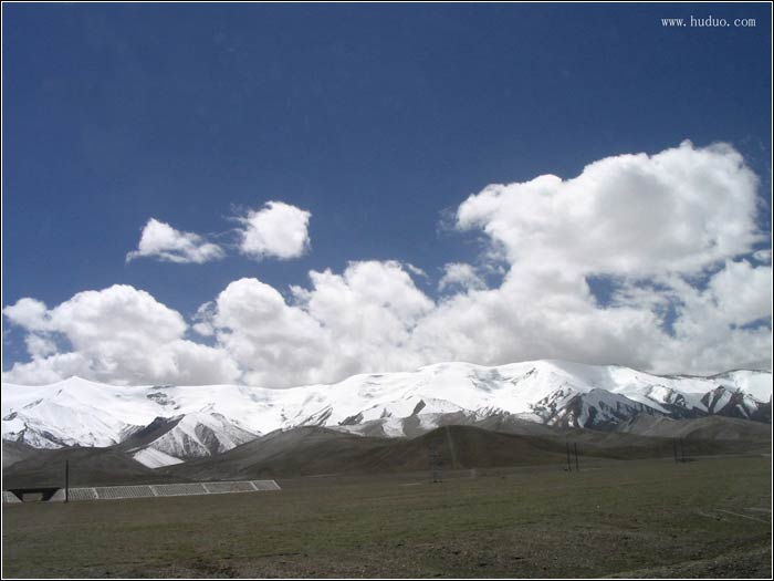 从格尔木一出来直到翻越唐古拉山口之前,109国道就一直和铁路并行。火车继续深入昆仑山脉中,从车上看周围的山已不再是之前所见的绵延起伏,而是高大雄俊。过了纳赤台就是玉珠峰站,在此可以看到也被称作“可可赛极门”峰的玉珠峰,