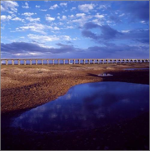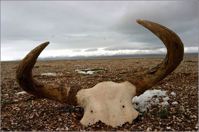 经过这段无人区的最大特点是铁路和公路都很少曲折,多数时候都是一条路直通向天际,“天路”这个称号,在这里得到了最好的诠释。天空就像古诗中所说“天似穹庐”,不同之处是这里的天是高原的天,天空呈现出幽蓝的色调,都市中的人可能只在宇航飞船快离开大气层时所拍天空的景象中见过。这里地面是深沉寒冻的高寒草原,但生命仍在此接近天际之处顽强蔓延着。