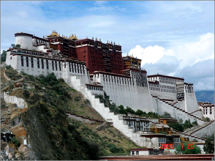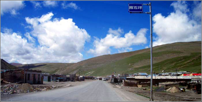 一穿过峡谷就到了雁石坪站,这里是个高原小镇,海拔4750米,距格尔木510公里。小镇虽然处于海西州,但是已经可以看到很多那曲地区的藏族牧民。这些牧民就与在青海湖周围看到的不一样,他们是清一色纯粹的牧民,而且穿着打扮用色大胆,形式感很强,面色中高原日光留下的痕迹更重。在这个小镇还有很多各地藏区去拉萨朝拜的团体,他们也是很有特色。总之到了这里,那种西藏的味道就很浓厚了。在雁石坪镇的右方200公里左右,还有著名的山峰各拉丹东,藏语意为“高高尖尖的山峰”。各拉丹东雪山海拔为6621米,是一片南北长50多公里、东西宽30公里的冰川群,共有50多条巨大的冰川。