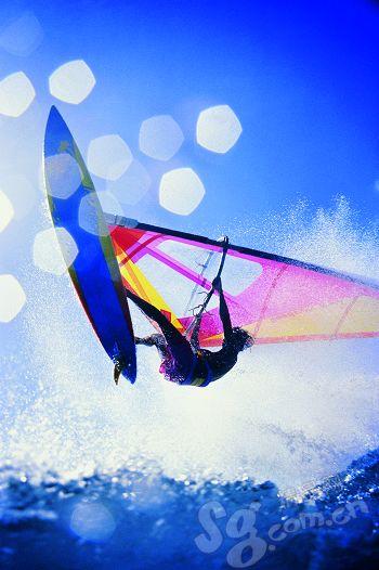 3.经验之谈:玩帆板首先要学会识别风向。下水前,可先在陆地上做水面模拟动作练习,学会平衡,这样能起到事半功倍的效果。