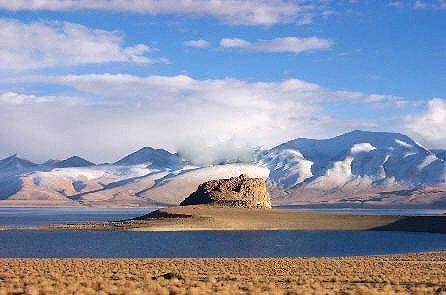 圣鬼两湖不但相隔不远而且两湖有水路相通。也许因为造化,圣湖和鬼湖的水质完全不同:圣湖的水清冽甘爽,鬼湖的水苦涩难咽。这两极的对立让我们不禁会想到本尊与佛母相拥的大象征——宇宙乃至一个虫子的精神是和谐统一。就像你现在看到的,圣湖和鬼湖同样在一阵柔风中轻轻起伏,没有炫耀没有悲戚,只有千古的厮守。教崇拜的最大的圣湖,也是西藏第三大湖,面积1400平方公里,长70公里,宽20公里,湖面海拔4600多米。