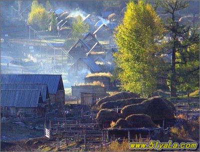 白哈巴村,虽小但很精致。随意点缀在村中木屋栏栅旁的白桦树,或金黄或翠绿,在晨光和夕阳下,闪烁金光,与木屋、炊烟、挑水的村妇,以及牧羊的孩童一起,营造着家园的温馨,释放着一种生命独有的暖意。