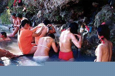 云南省怒江自治州有个六库县,当地有个大名鼎鼎的”跃进桥温泉“,因每年春节举行的”澡堂会“而出名,我们赴的就是这个洗澡大会。 到达六库县城的时候,已经是下午4点多了,我们租了两辆机动三轮车沿怒江而上,不多时便到了”澡堂会“的会场--跃进桥。公路上便可看到江边一块大坝子彩旗飘飘,人声鼎沸。经过一番查找,我们寻到了一块绝佳的扎营地--怒江边一块柔软的沙地。不远处就是一棵巨大的攀枝花树,从树根下泪泪而出一江温泉,滑而不腻、热气腾腾、清澄无比。扎好营后我们便迫不及待地投身其中,一路的旅尘、一身的疲乏一会儿就荡然无存。头上攀枝花树用它那巨大的华盖替我们遮住了不时飘来的细细雨丝,一米开外奔腾的怒江水滔滔而过,左手一瓶啤酒,右手一个鸡翅膀,神聊天空海阔,笑谈奇闻逸事,如神仙般快活! 一觉醒来,薄薄晨曦中已有三三两两的傈僳妇女结伴来到池中休浴,洗去一年的辛劳,洗来一年的好运。就那么自自然然地脱衣下水,尽情地享受着这大自然的施与,丝毫不因我们在一旁而介意,也不反对我们将镜头朝向她们。据说以前的风俗是男女老幼同他共浴,自然古朴,没有任何私心杂念。后来由于开发旅游事业,游人渐多,当地政府下令男女必须分池而浴,男同胞们现在都在百米开外的另一个泉眼处洗浴。 六库东依碧罗雪山,西靠高黎贡山,怒江纵贯其间,江东是政治商业中心,江西是文化区,怒江傈僳族自治州的首府就设在这里。 白族人说,过去这里是珍禽异兽穴居的地方,土司官常在这里下扣打鹿所以叫“鹿扣”。“鹿扣”是“六库”的谐音,这是一种通俗词源学的比附。汉族人说,这里周围一共有六座山峰,峰峰都有宝藏,共有六个宝库,因此称为“六库”。很明显,这是望文生义的牵强附会。而较早居住在这里的傈僳族则说,这里常常遍地冒水,地下有龙潭,所以叫龙洞(龙洞傈僳语为lutku,汉语音译为六库)。不同的说法都有不同的依据,不过它们也仅仅只能证明六库是一个古老的地名而已。 六库——这个过去瘴气弥漫之地,如今春意盎然,充满生机。每当夜幕降临,沿江两岸的楼房建筑和灿烂的灯火倒映怒江,泛起闪闪光波,犹如一幅幅恬静优美的夜景画,凡是到过这里的游人无不赞美这峡谷的新城,怒江的一颗明珠。