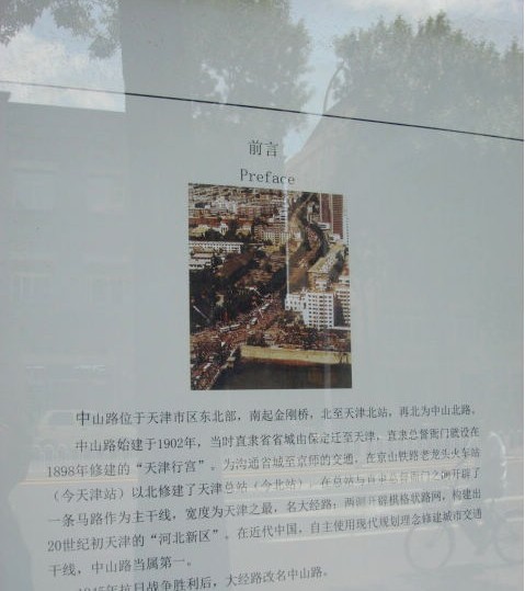 1902年,海河以北形成了一条新的马路——大经路。不久,路的西南、东北两端建起了金刚桥(1924年改建为钢架金刚桥)和铁路北站。以大经路为中心,又逐渐形成二马路、三马路等四条与之平行的经路和天、地、元、黄等与之垂直的十二条纬路。抗战胜利后,大经路改称了中山路。