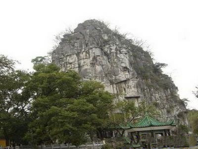 山峰突兀而起,形如刀削斧砍,周围众山环绕,孤峰傲立,有如帝王之尊。峰顶是鸟瞰桂林城全景的最佳观景台。峰壁摩崖石刻星罗棋布,纵横出世,特别是“桂林山水甲天下”这千古名句的真迹就题刻于此。峰下的太平岩洞内有世界文化奇观“太岁”摩崖石刻。