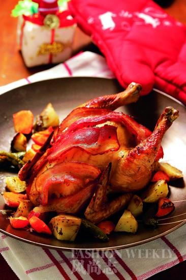 烤火鸡是美国人圣诞晚餐中不可缺少的大菜,这样的饮食习俗至今已有300多年的历史了。火鸡比较个大,在中国市场上通常要在临近圣诞节时,到外国超市才能购买到,价格也偏贵。于是,可以选择普通的鸡,用圣诞烤鸡的方法来烹制。