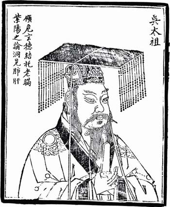 8.吴:孙权活动于长江下游一带,历史上曾建吴国,曹魏曾封孙权为“吴王”,故史称“孙吴”;又因位于东边,也称“东吴”。图为吴太祖像。