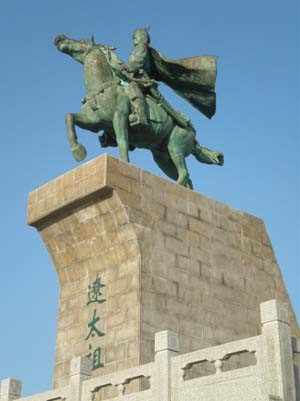 12.辽:辽原称“契丹”,改“辽”是因居于辽河上游之故。图为辽太祖雕像。