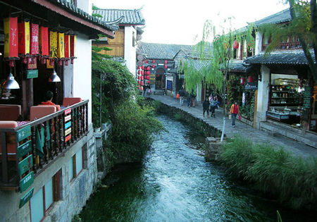 行走在丽江街头,你可以看到流水穿室,人居水上的飘逸与浪漫;你可以看到柔波里水草青郁,鱼儿游弋的悠闲自在;你可以看到金发碧眼的老外来往穿梭,店铺招牌中文外语并存,不甘寂寞的传统手工制品林林总总与无孔不入的现代工业品琳琅满目的和谐统一;你可以看到街傍水筑,水依街流,杨柳依依,流水潺潺的清丽与久远;到夜幕降临时,小桥流水边,这时候只听得见自己的心跳,此时说一声“我爱你”更简约单纯。