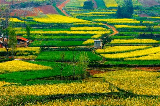 所以,我觉得有必要把全国几个有特色的赏油菜花的地方一一罗列,并告知大家开花的时间,在油菜花大概一个月的花期里,你既可以选个好天就近观赏,也可以如大雁一样南北迁徙,品评不同个性的金黄。