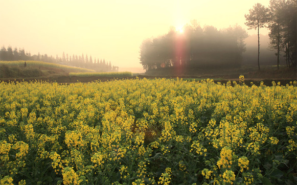 油菜花的颜色,能让人感觉到很多安全词汇的存在,比如晴朗、笑意、清纯、润泽,这种感觉能让人把淤积了一个冬天的阴霾与犹豫统统赶走。所以这种原本普普通通的油料作物几乎已经被定义为春天的代言。我没有做过统计,但是我绝对相信看过油菜花的人绝对比吃过菜籽油的人多。然而我们的国家太大了,一个地方的油菜花早已进入怀孕和妊娠阶段的时候,另一个地方可能才刚刚从冬季襁褓中伸开懒腰。