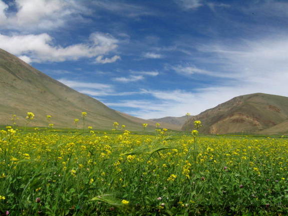 2.由县城沿大水井去多伊河风景村的途中。这里地形起伏较大,花田随地形梯田种植,富于变化,是拍照的好地方。