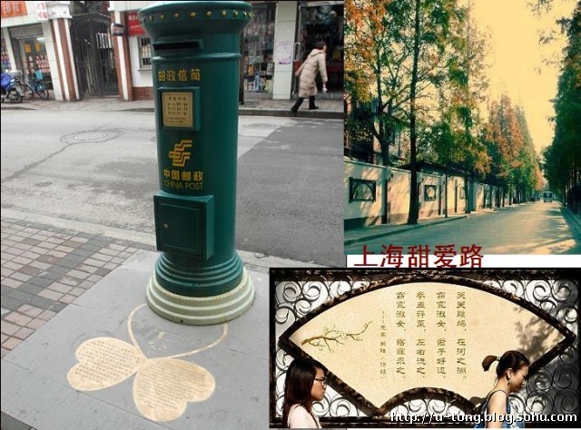 艳遇理由:甜爱路不长,大约只有500来米,宽也不过是数米的单行道,南起四川北路,北至甜爱路315弄。因与千爱里相通,又称千爱里(路)。在民国时期,起谐音为“甜爱路”。它被誉为上海“最浪漫”的道路。路口处有一个爱情邮筒(爱心邮筒),如果你将信件投入这个邮筒,收件人可以收到盖上英文“爱”字样的邮戳,独特的爱心邮戳无疑是传达爱意的新招式,浪漫而新意,每一个邮递员都成了这份情谊的传递者。道路两侧是由28首中外著名爱情诗篇组成的“爱情墙”,牵手走过,恋人时常诵读墙上的爱情佳句。