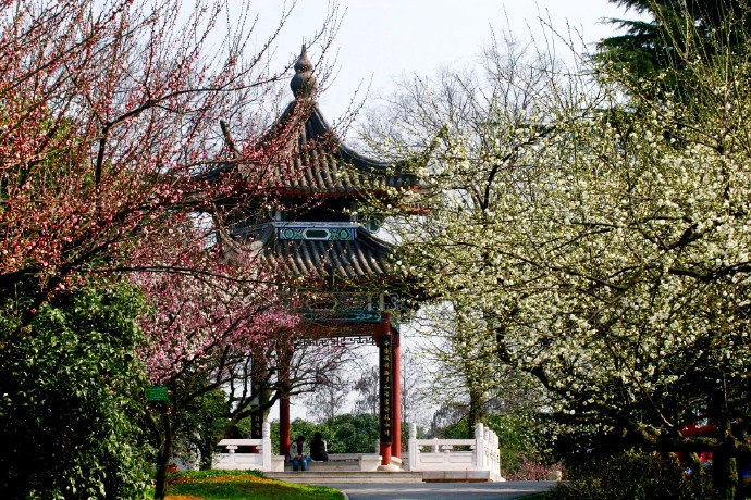 位于武汉市东郊的东湖磨山,我国四大梅园之一。磨山环岭临湖,环境幽静,风光别致,占地33.3多公顷,有梅树、梅花盆景3万余株(盆),品种200多个,已成为蜚声海内外的赏梅胜地。郭沫若有诗云:“且喜东湖春早到,红梅万株一齐开。”