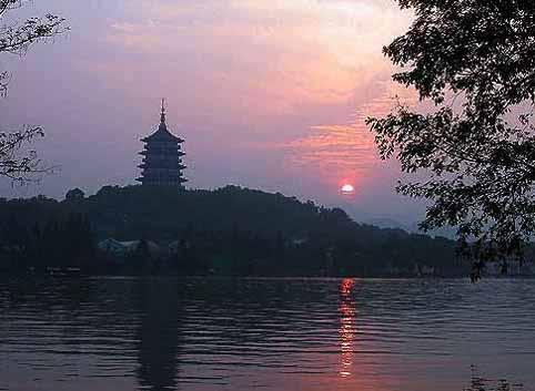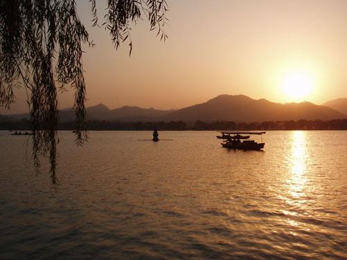 西湖 太阳下山