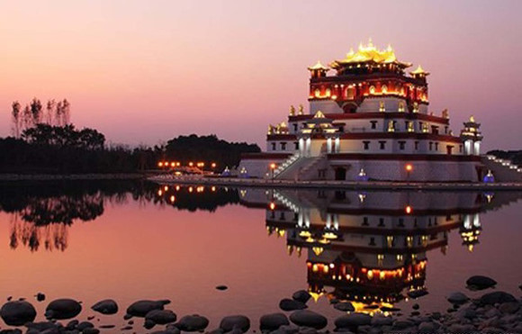 中国的建筑一直深受风水和佛教思想的影响,在梵宫更是表现的淋漓尽致。因为梵宫可是占据着最好的风水:它位于小灵山脚下,太湖之滨,侧畔还有高达88米的灵山大佛。梵宫是专为2009年第二届世界佛教论坛而建造的,宫内到处流光溢彩,金碧辉煌。