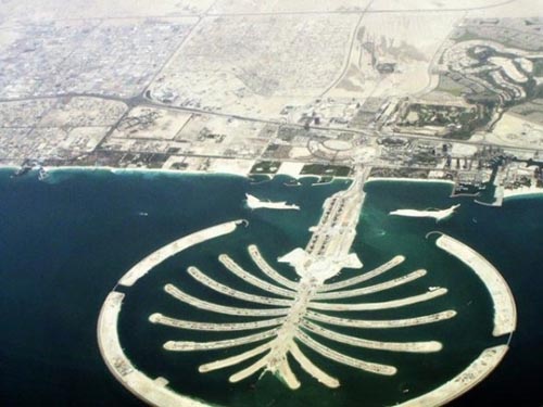 迪拜有着世界上最大的人工岛开发项目,即著名的棕榈岛。这个耗资120亿美元的建设项目始于2001年,棕榈岛集团(Nakheel)已经将9400万立方码的沙和700万吨石头填进波斯湾。棕榈岛的核心地带包括一条单轨铁路和一条8车道的高速公路。两架战斗机被拆毁后、被沉入人造的海岸以创造人工的暗礁。28条海豚被放养在里面以形成岛内的海豚湾。