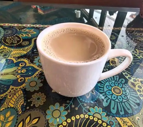 在加德满都的街道两旁,早上常有卖早餐的小贩,一般来说是一杯尼泊尔奶茶(Nepali Tea)加白煮蛋,尼泊尔奶茶的做法是先用汽化炉将鲜奶加热,加入红茶叶之后继续煮,再将茶叶过滤掉即可,虽然杯子都很脏,但是路边的小贩卖得奶茶的确是比较香纯可口;此外还常喝的一种Masala Tea,是将奶茶加入masala及肉桂粉或姜一起煮,在山上时为了补充维他命C,我也常叫热柠檬茶来喝,尼泊尔的水果比肉贵,在巴克塔布的市场喝一杯现打石榴汁竟引起人群围观,害的我们喝的挺不好意思的。