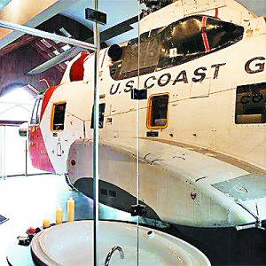 睡在直升飞机里不是重点,重要的你将入住的是架曾经为美国海军服役的直升机。安放在Winvian酒店房中央的双引擎直升机,是1968年出产的SikorskyseaHH37 Sea King型。原驾驶室内从引擎、仪表板到驾驶椅等每一个部件,都分拆再转移到酒店房间之内。直升机的内部已完全改头换脸,驾驶舱铺上华贵的床铺,座椅换上舒适的软垫,再挂上大电视、装上酒柜,想象一下,像总统一样休息一夜吧。