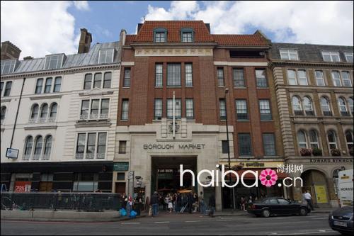 博罗市场 (Borough Market) 位于伦敦桥下,始建于1754年,拥有两千多年的历史。今天的博罗市场 (Borough Market) 不仅是伦敦南岸生鲜食品的中心,更是伦敦最大型、最具历史和规模的食品批发市场。单是在星期五、六加开的零售市场,便有超过一百个不同种类的摊档摆卖 。伦敦人常说:若要买品质最好、最新鲜的食品就要到博罗市场 (Borough Market) ,这里的每一个摊位都经过最严格的品质测试,连经验丰富的大厨都是这里的常客。博罗市场 (Borough Market) 以生鲜食品闻名,在这里你可以买到层层叠叠的芝士、新鲜出炉的全麦高纤面包、色彩缤纷的有机蔬果、新鲜便宜的生蚝 、鱼贝海鲜、未经冷冻的肉品等等,还有无数认识或不认识的香料、酱汁、健康食品,更有售卖有机食品的摊档,这一切都充满了魅惑。说真的,来到博罗市场 (Borough Market) 你就会有想买菜煮饭做大厨的冲动!