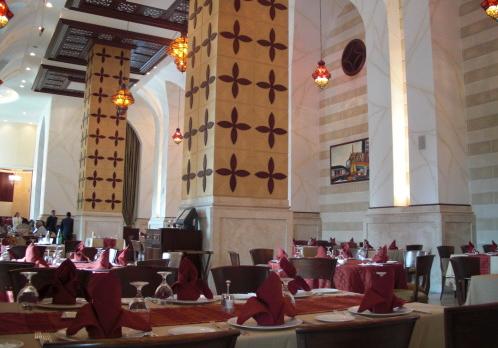 一进大厅,就看到有人在拍照,这样的大厅果然是带着阿拉伯式的富丽堂皇。