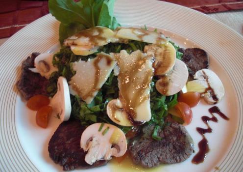 这一道是牛肉沙拉,感觉有点像在意大利吃过的生牛肉沙拉,不同之处就是这里的牛肉是熟的,可蘑菇却是生的。。啊啊。我不是兔子啊。。