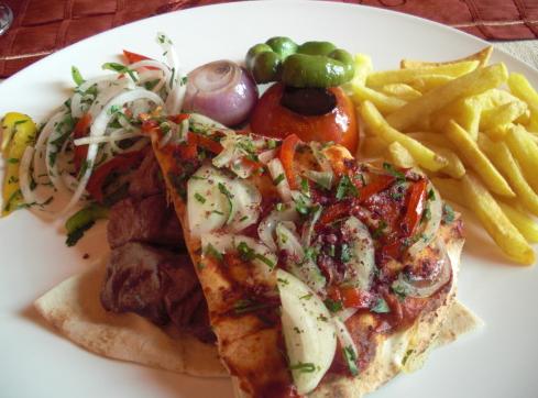 最后是主菜,就是烤羊肉,中东菜经常在牛羊肉里打转,这也和他们的民族习性有关系吧。