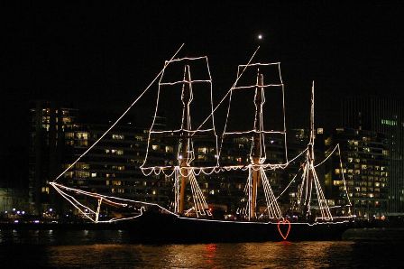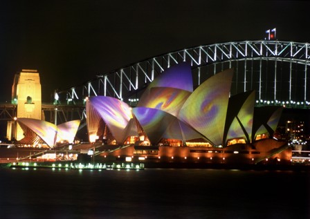 接下来的是海港灯光游行(Harbour of Light Parade),55艘船将围绕悉尼海港表演,霓光将幻化出船的形状: