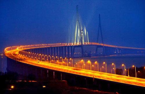 中国东海大桥于2005年5月竣工,这座19英里长的大桥是目前世界上最长的跨海大桥之一,跨越东海,从上海至小洋山岛深水港。