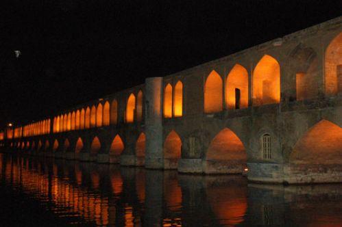 赫久古桥是伊朗最著名的桥梁之一,阿拔斯二世在1650年一座更古老的桥梁基础上建造的,它共有23个拱形结构,总长度344英尺,45英尺宽。