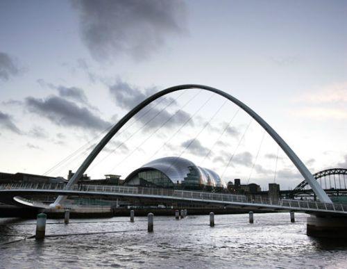 盖斯黑德千禧桥是一座倾斜桥,仅用于步行者和脚踏车通过。横跨在英国泰恩河上,这座桥通过水锤泵的旋转使水面船只过往。