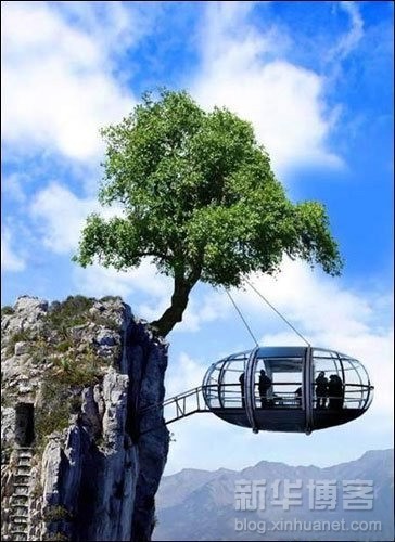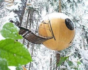 这是加拿大不列颠哥伦比亚省的一处奇特住房,被称为“自由精灵屋”。这个房子看起来像个大球,被悬挂在大树上,你也可以将这座木制球体房屋吊在任何坚固的表面上。