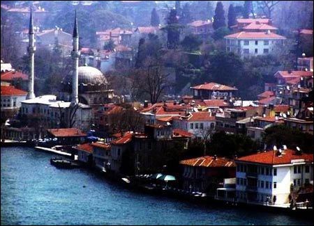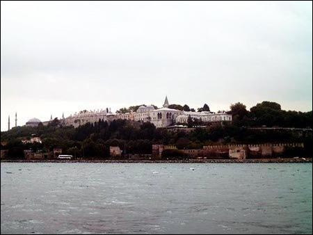 在博斯普鲁斯海峡与金角湾及马尔马拉海的交汇点上有一座辉煌的建筑,这就是从15世纪到19世纪奥斯曼帝国的中心——托普卡普皇宫,这迷宫般的豪华至极的地方,是当年苏丹们办公的地方。宫殿外侧是绿木葱郁的第一庭院,原本是宫廷餐室的第二庭院,现在成为帝国时代水晶制品、银器以及中国陶瓷器的藏馆。左侧是苏丹的后宫,当年这里发生了种种阴谋。在第三庭院有谒见室、图书馆、服装珠宝馆(可看到世界第二大的钻石)以及价值连城的中世纪的绘画书籍。宫殿的中央是圣遗物室。