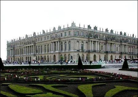 凡尔赛宫是法国封建时的帝王的行宫,在巴黎市西南凡尔赛城。始建于十六世纪,后屡经扩建形成现存规模。包括宫前大花园、宫殿和放射形大道三部分。形体对称,轴形东西向。宫内装潢极其豪华,内壁悬挂壁毯、油画、雕刻,大厅内陈列著名雕刻家的青铜或大理石雕像,享有艺术宫殿之盛誉。1919年《凡尔赛和约》在此签定。