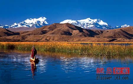 的的喀喀湖位于玻利维亚与秘鲁交界,海拔为3812米,是世界最高的适宜商业驶船的湖泊。总水量为南美最大,水源来自降水以及周边高原的冰山融水。