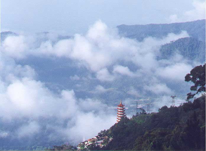 这里山峦重叠,林木苍翠,花草繁茂,空气清新怡人。东面有森巴山,西面是朋布阿山,登山公路曲折迂回。云顶的建筑群位于海拔1772米的鸟鲁卡里山,在云雾的环绕中犹如云海中的蓬莱仙阁,又如海市蜃楼。在这里可以饱览云海变幻莫测的奇观。晴空万里时,视野辽阔,夜间西观可欣赏吉隆坡辉煌的灯火;凌晨东眺,云海晨曦,绚丽无比。