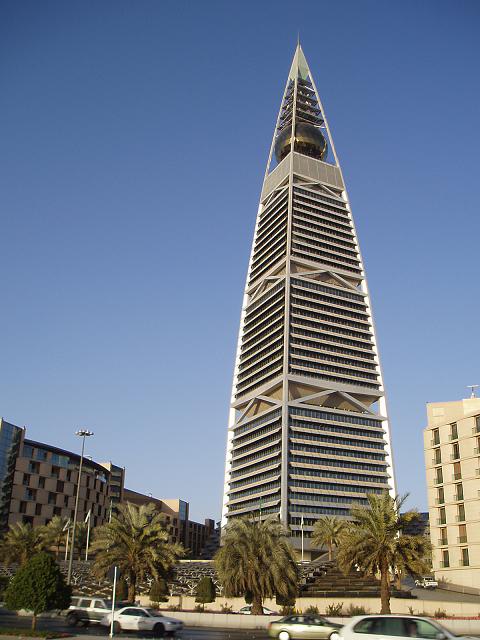 王国中心-位于利雅得市中心,高302米,是目前中东最高的建筑,利雅得市的地标性建筑,也是沙特经济高速发展的象征。大厦由沙特瓦利德亲王的王国控股公司所有,总投资额达30亿里亚尔,由美国Ellerbe