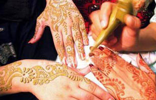 巴基斯坦的婚礼通常在新娘家举行,但现代的婚礼已经不那么严格了,塔蒂姆的婚礼就在他家举行。与其他一些伊斯兰国家一样,巴基斯坦新娘要在婚礼的前5天进行一次正式的沐浴。沐浴之后,由女性至亲好友为其梳妆打扮,并在手上和脚上染指甲花油。她们还用一种特制的褐色树脂油在手背、手腕和脚背、脚腕上绘出美丽的花纹,来表达自己喜悦的心情。记者刚到巴基斯坦时还以为这是在文身,后来才知道涂料是天然的,花纹可以洗去。
