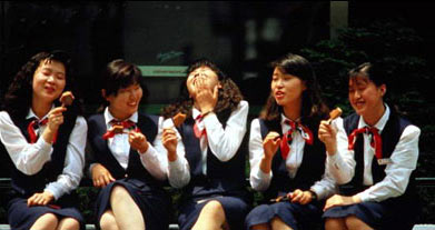 位于新村的延世大学是电影《我的野蛮女友》的取景地,这里虽见不到片中女主人公一样的“野蛮女友”,但恋爱中的女大学生的地位也是其她年龄段的韩国女子无法相比的。新村的街道上常常能见到男生们亦步亦趋地陪在女友身边的情景,他们可以为女孩子拎包,陪女孩子逛化妆品店。一起吃饭时,女孩子们可以毫无顾忌地大声说笑,这种情形是绝不可能发生在比她们年长的女人身上的。